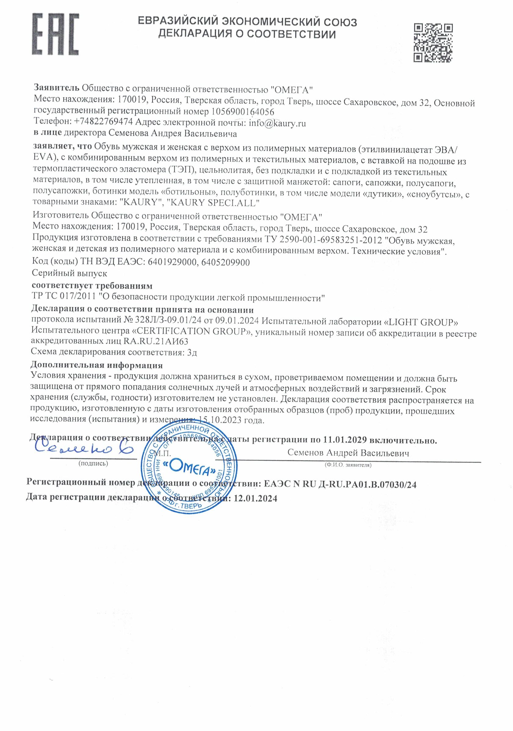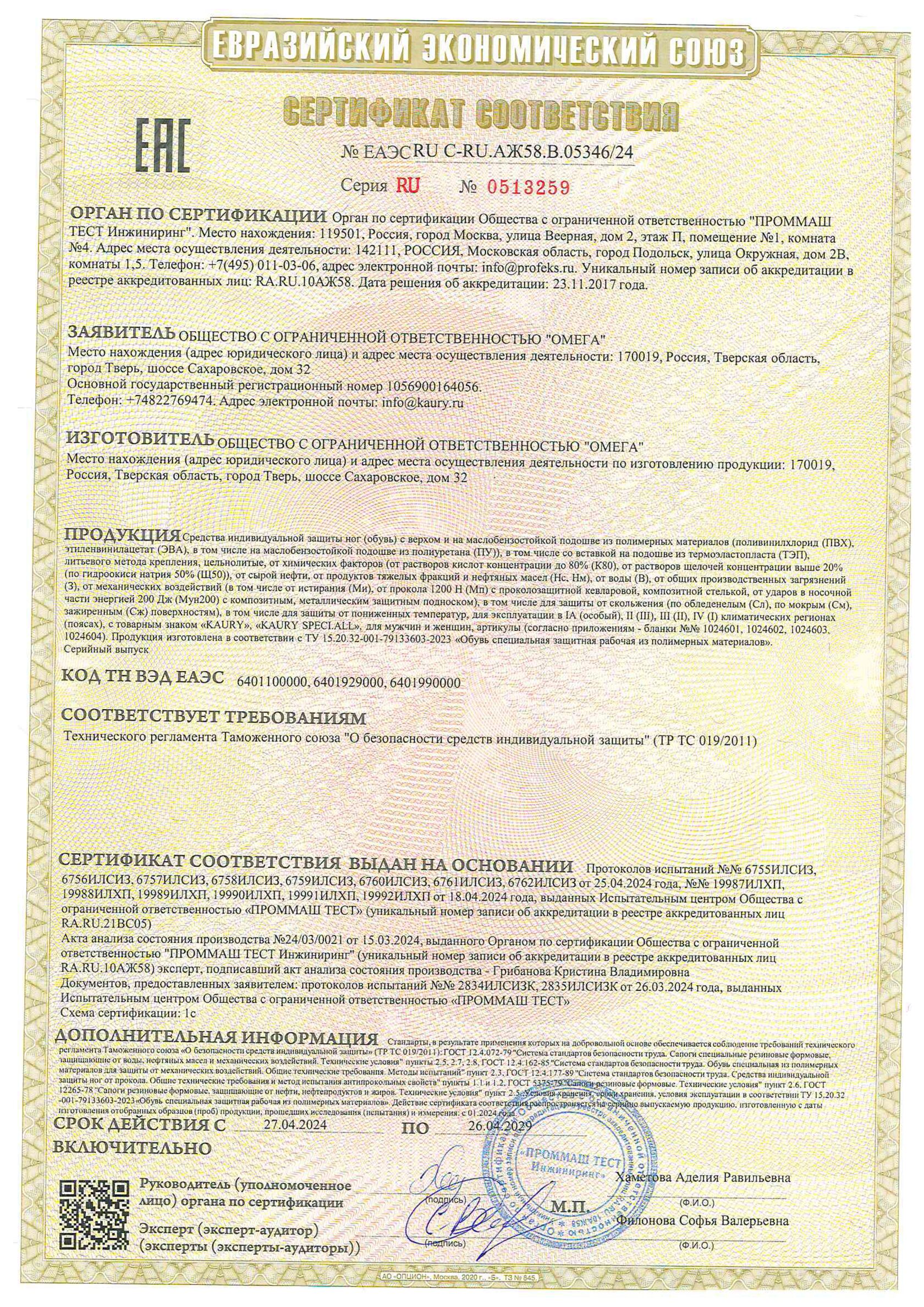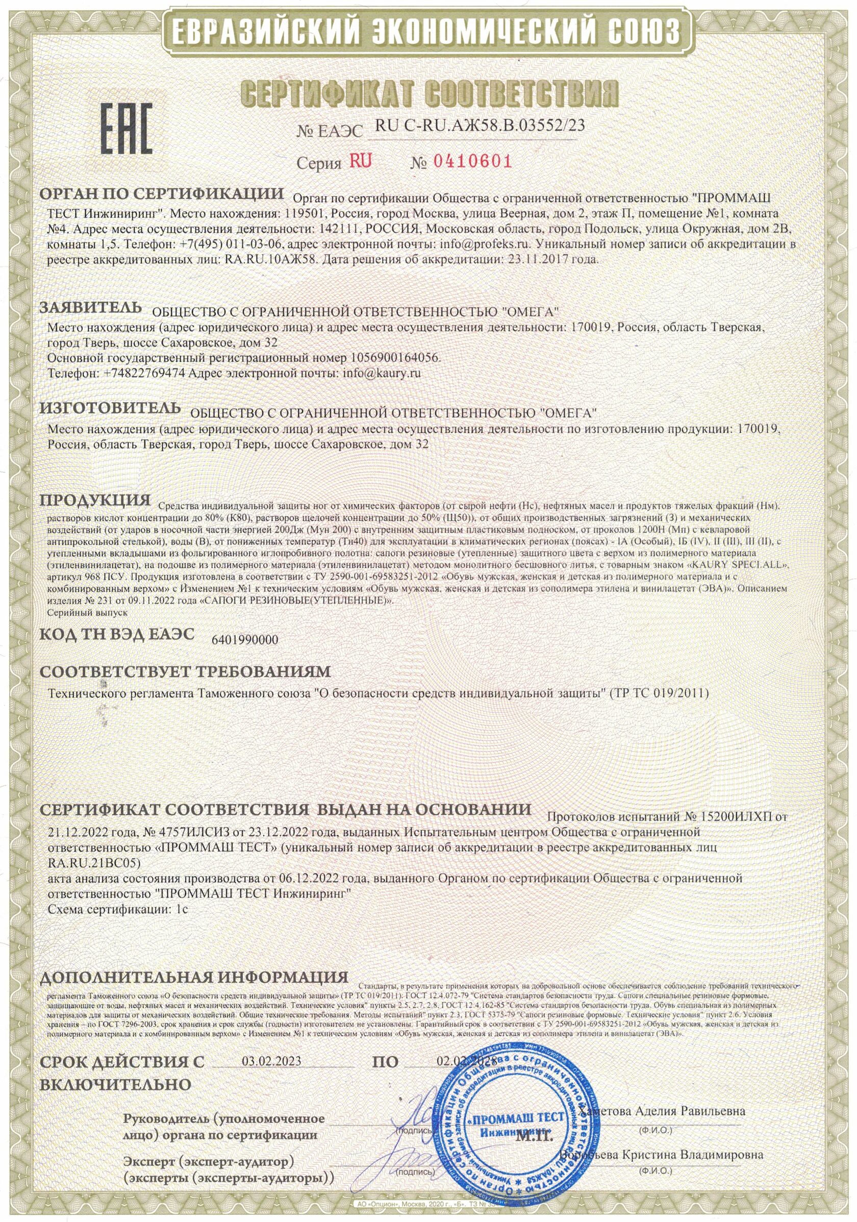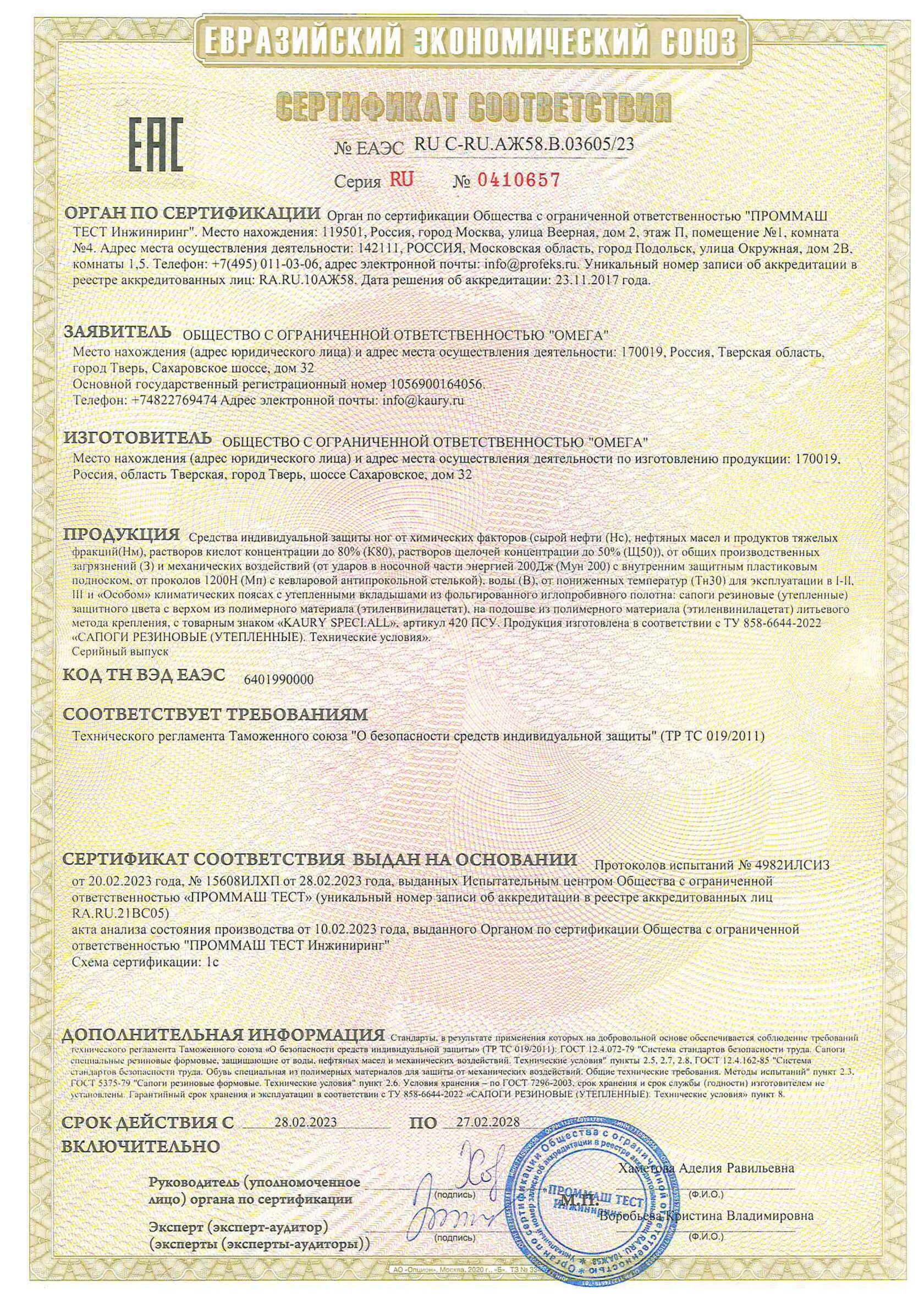 Средства индивидуальный защиты ног от химических факторов, от общих производственных загрязнений, от пониженных температур (по 02.02.2028)