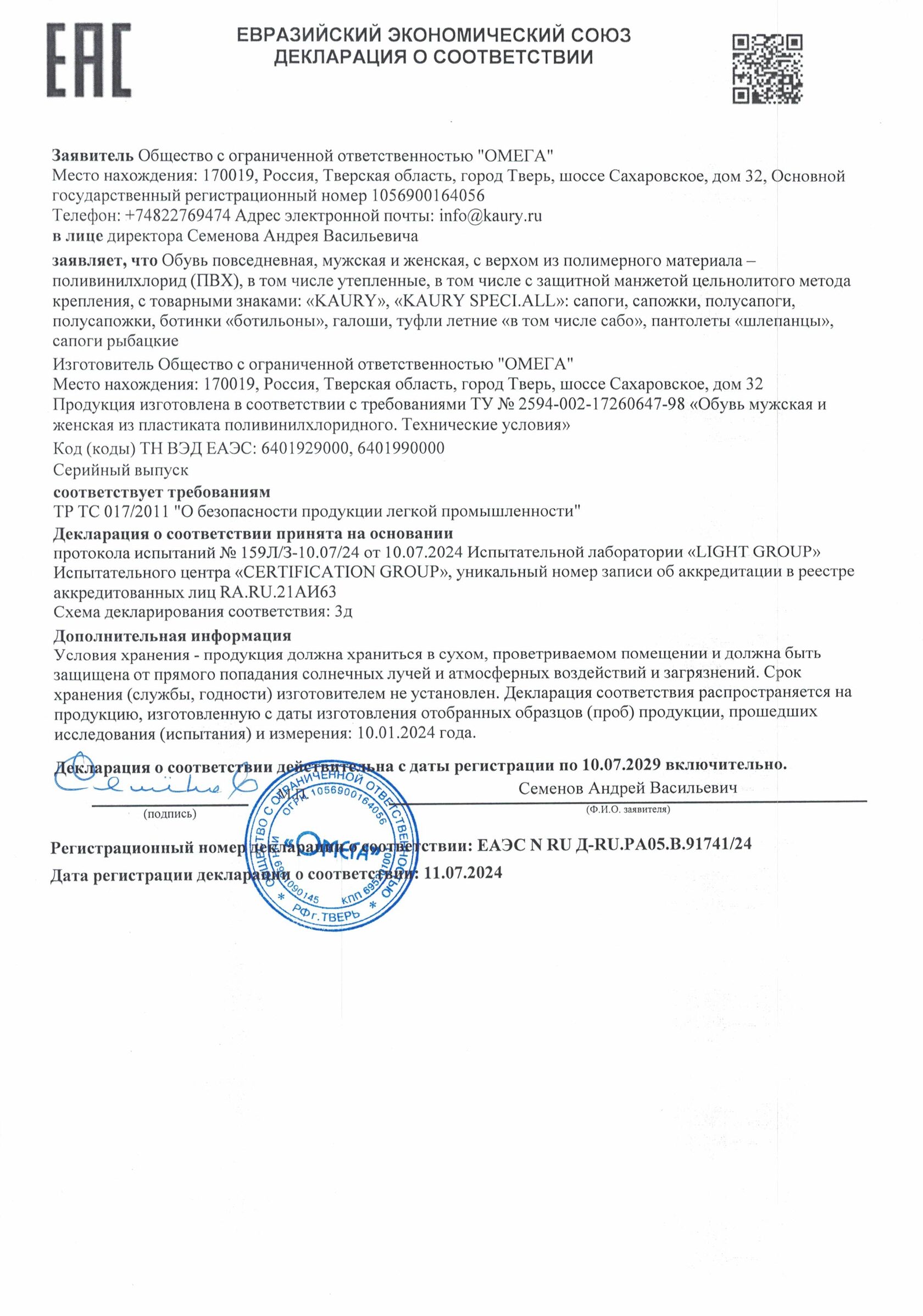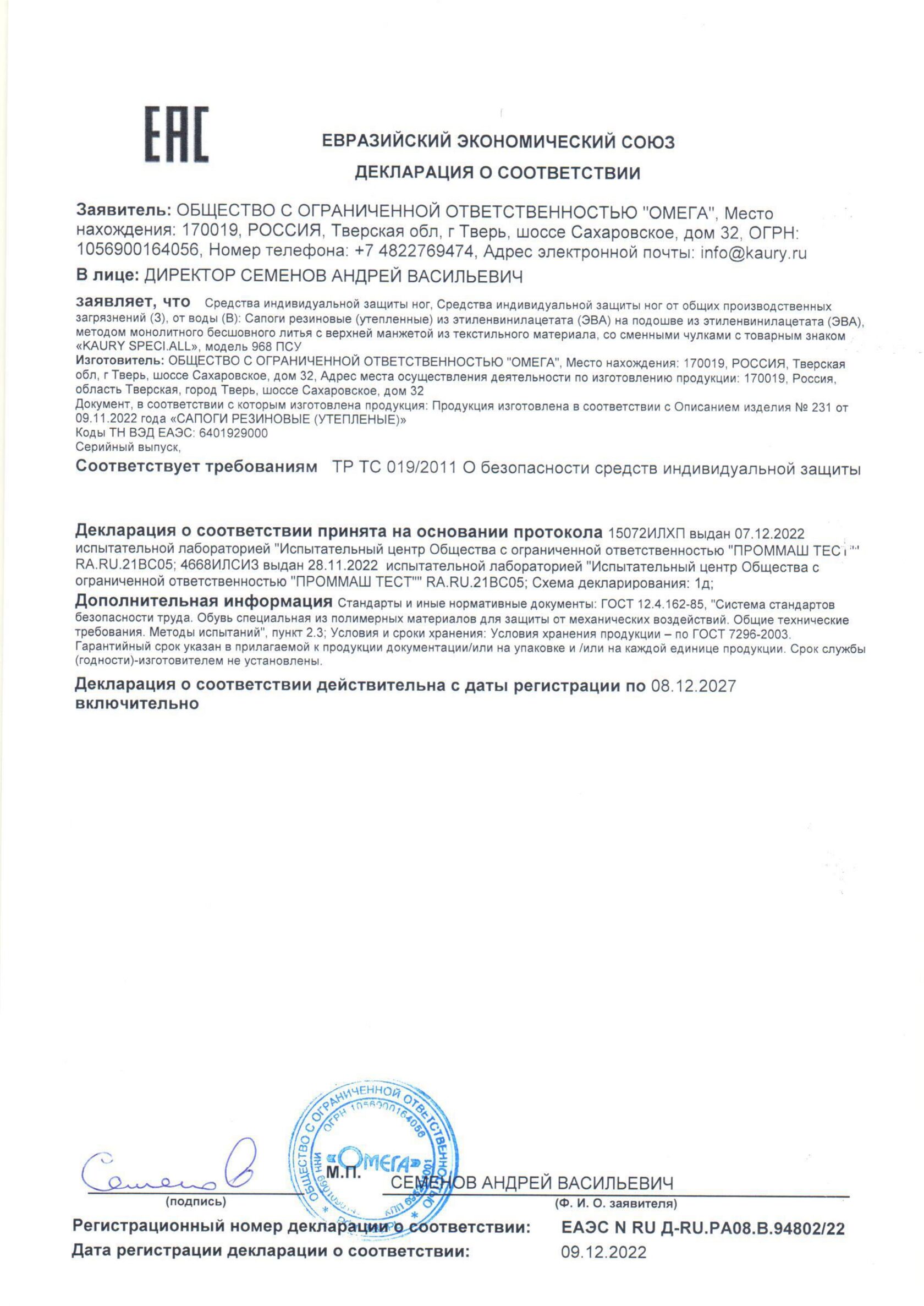 Средства индивидуальный защиты ног от общих производственных загрязнений, от воды (по 08.12.2027)