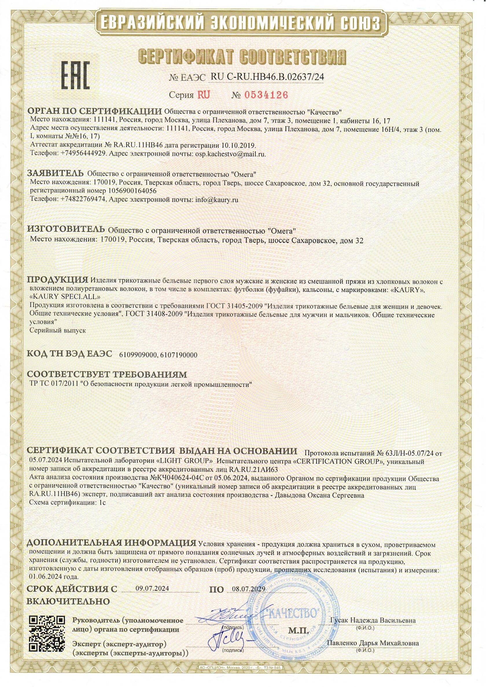 Изделия трикотажные бельевые первого слоя мужские и женские из смешанной пряжи из хлопковых волокон (по 27.02.2028)