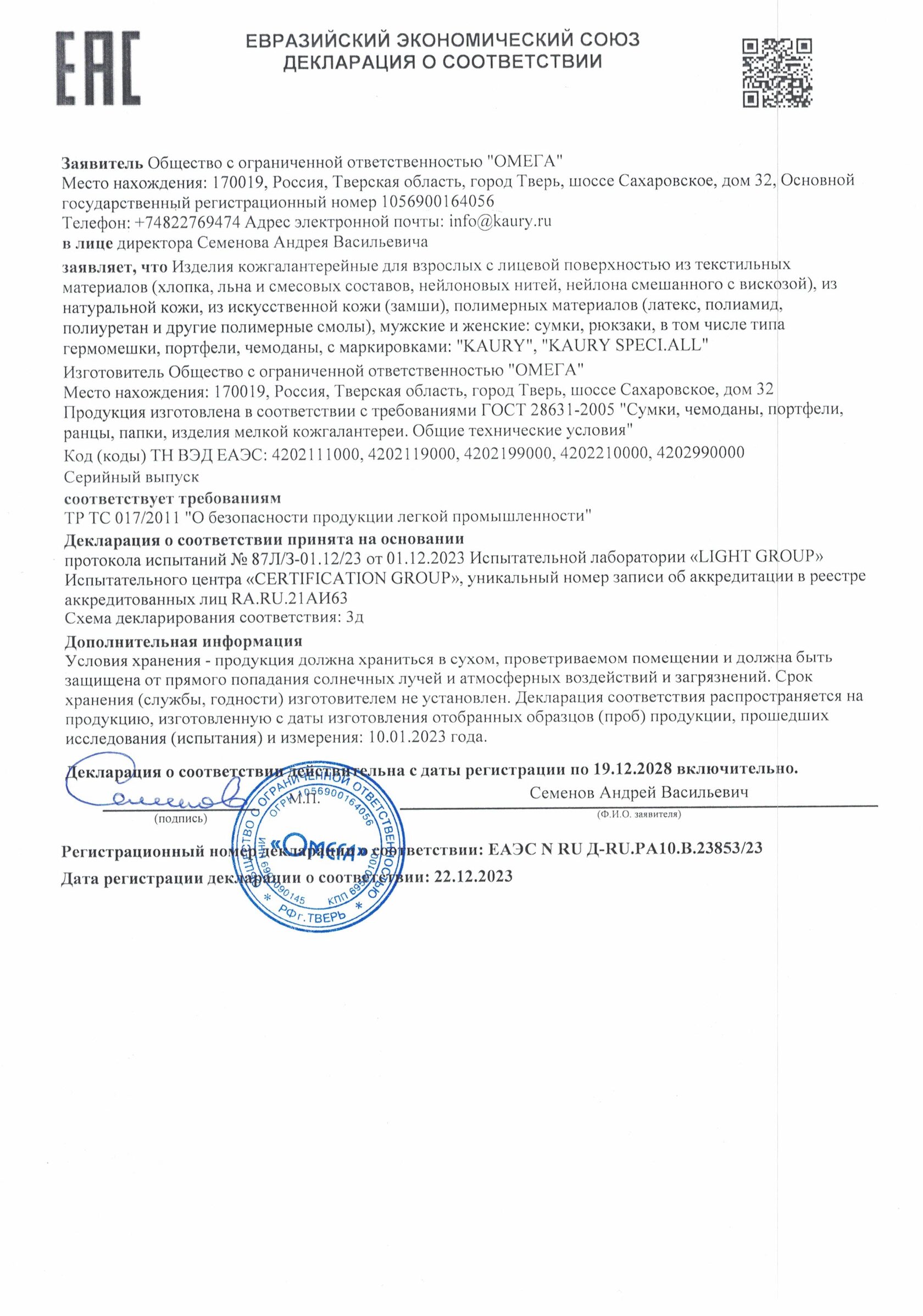 Изделия кожгалантерейные для взрослых с лицевой поверхностью из текстильных материалов (по 19.12.2028)