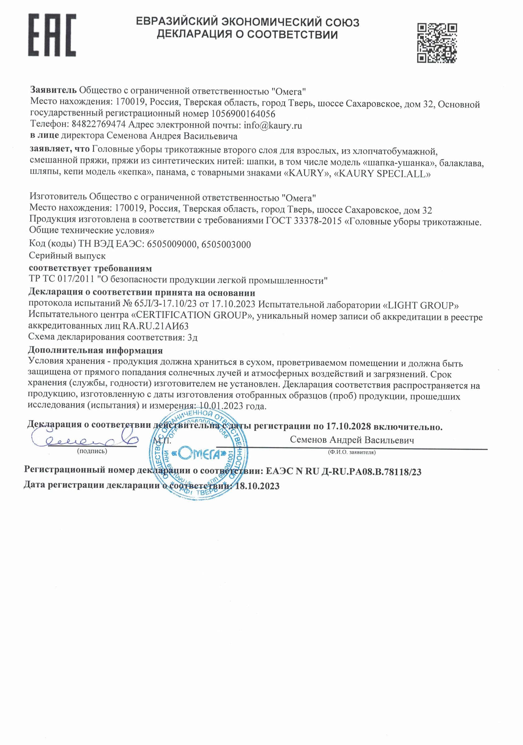 Головные уборы трикотажные второго слоя для взрослых (по 17.10.2028)