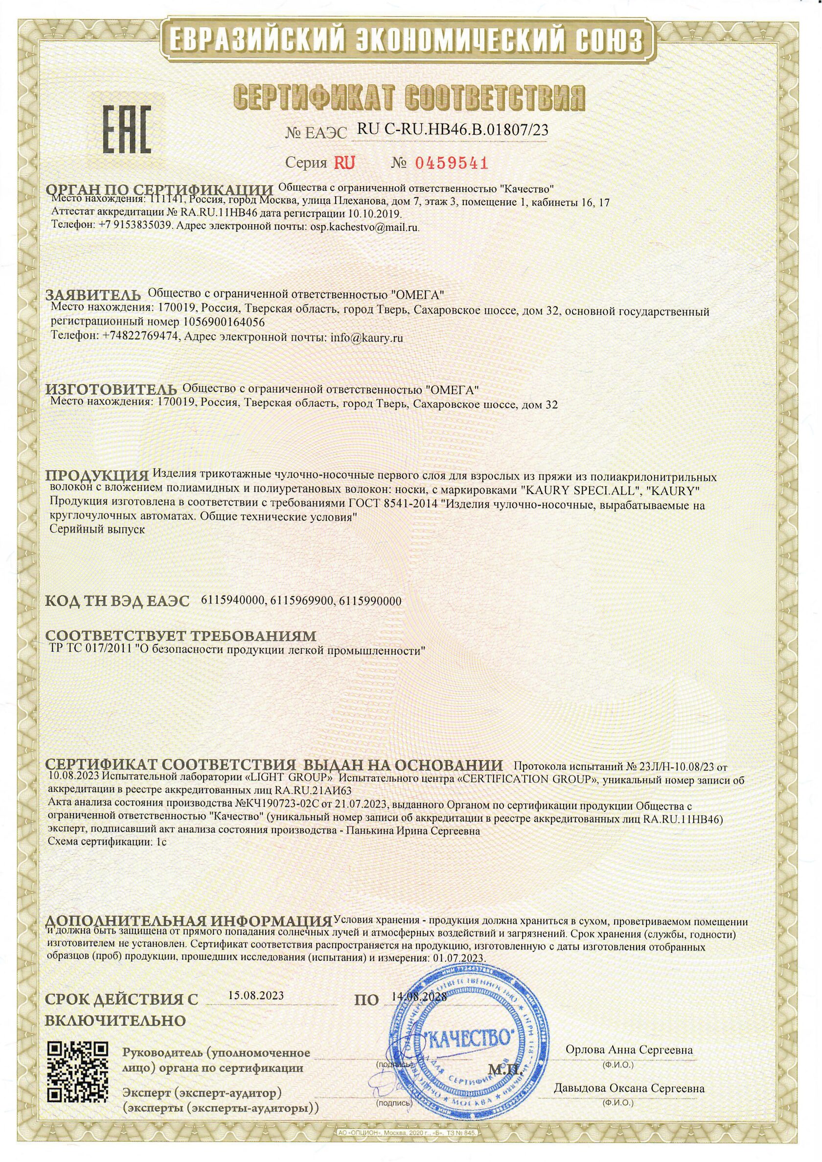 Изделия трикотажные чулочно-носочные первого слоя для взрослых из пряжи из полиакрилонитрильных волокон (по 14.08.2028)