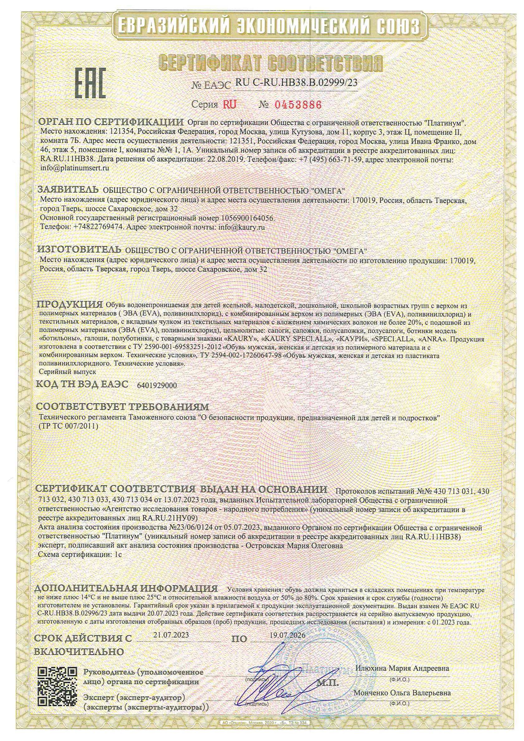 Обувь водонепроницаемая для детей ясельной, малодетской, дошкольной, школьной возрастных групп с верхом из полимерных материалов (ЭВА (EVA), поливинилхлорид) (по 19.07.2026)