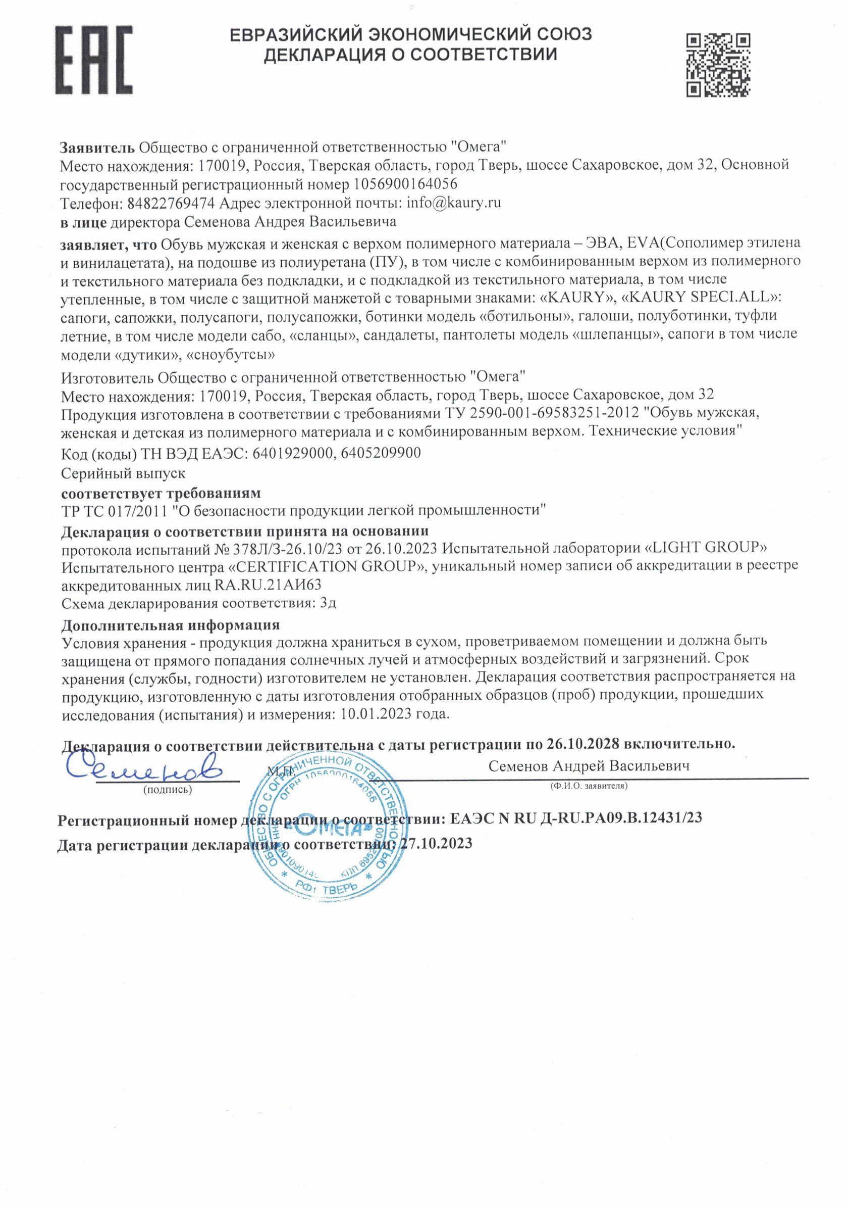 Обувь мужская и женская с верхом из полимерных материалов (этилвинилацетат ЭВА/EVA), с комбинированным верхом из полимерных и текстильных материалов (до 11.01.2029)