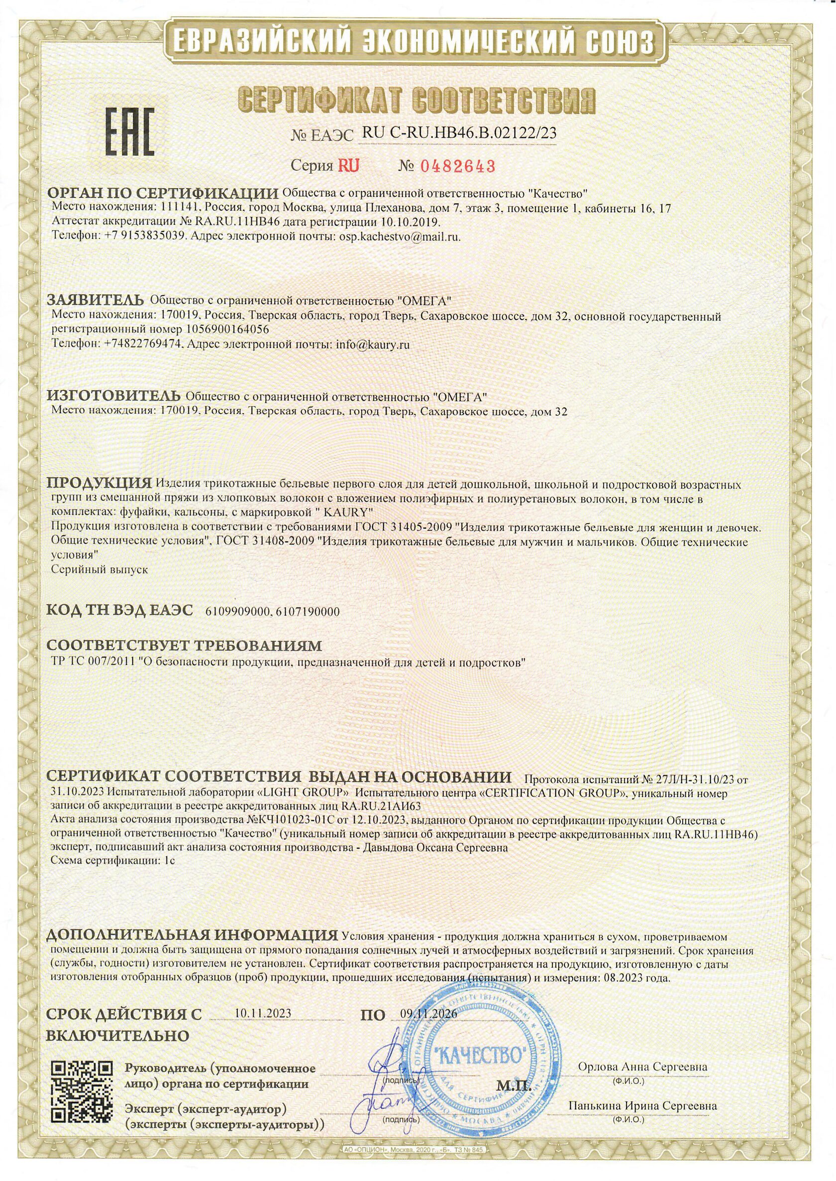 Изделия трикотажные бельевые первого слоя для детей дошкольной, школьной и подростковой возрастных групп из смешанной пряжи (по 09.11.2026)