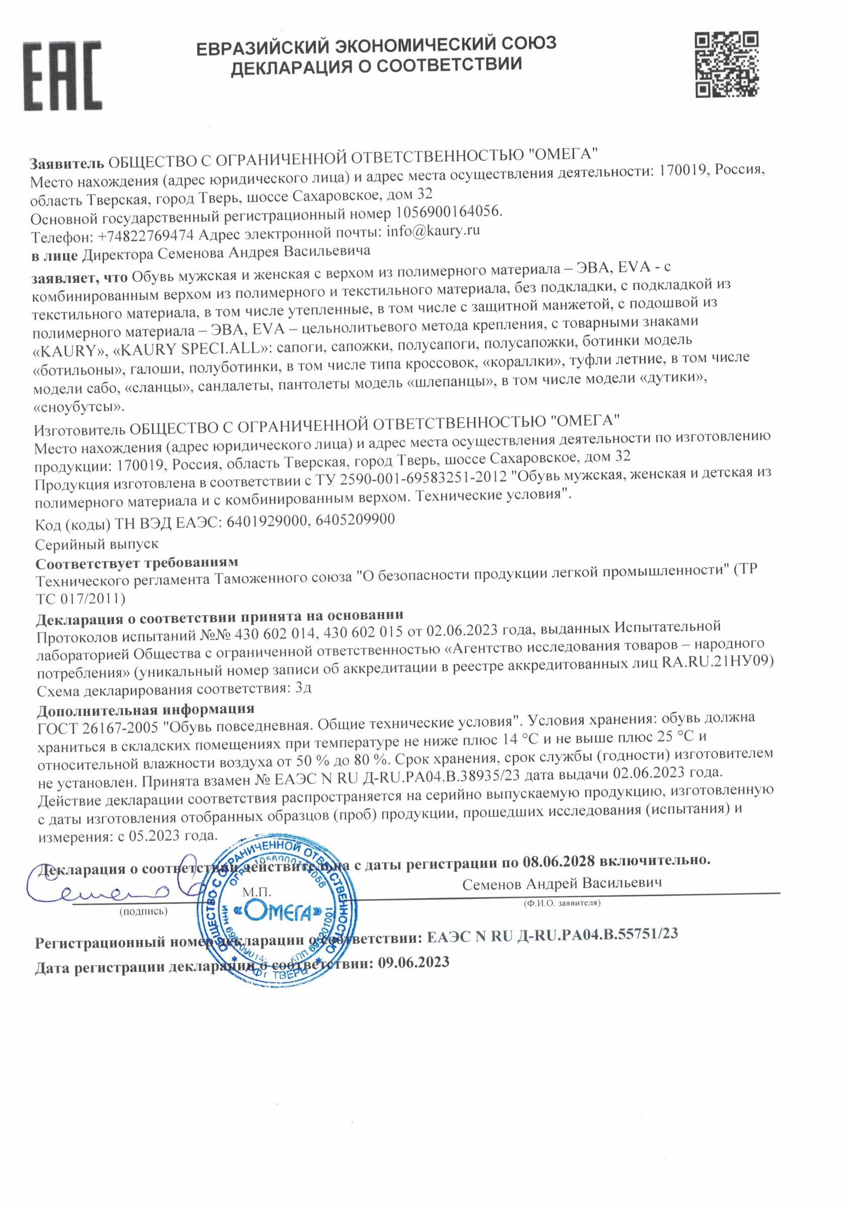 Обувь мужская и женская с верхом из полимерного материала - ЭВА, EVA - с комбинированным верхом из полимерного и текстильного материала (до 08.06.2028)